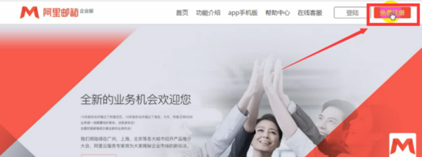 阿里邮箱怎么注册?阿里邮箱企业版注册方法1.首先进阿里入官网,然后右上角单击免费注册,下滑单击五折抢购注册。