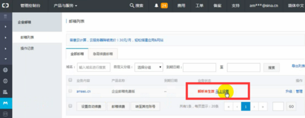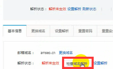 5.进入企业邮箱选择后,首先单击解析未生效后面的马上设置,然后检查域名解析,如图