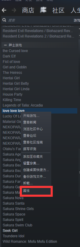 一、在库里找到游戏,点击鼠标右键,找到属性。