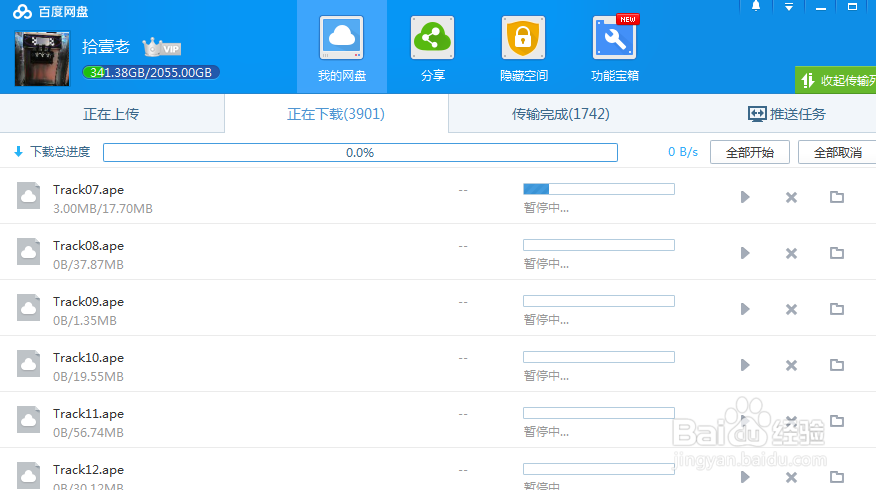 最后我们把需要下载的勾选,点击下载或离线下载,选择好电脑或手机里的保存的位置,点击确定,在传输列表中就可以看到正在下载了。