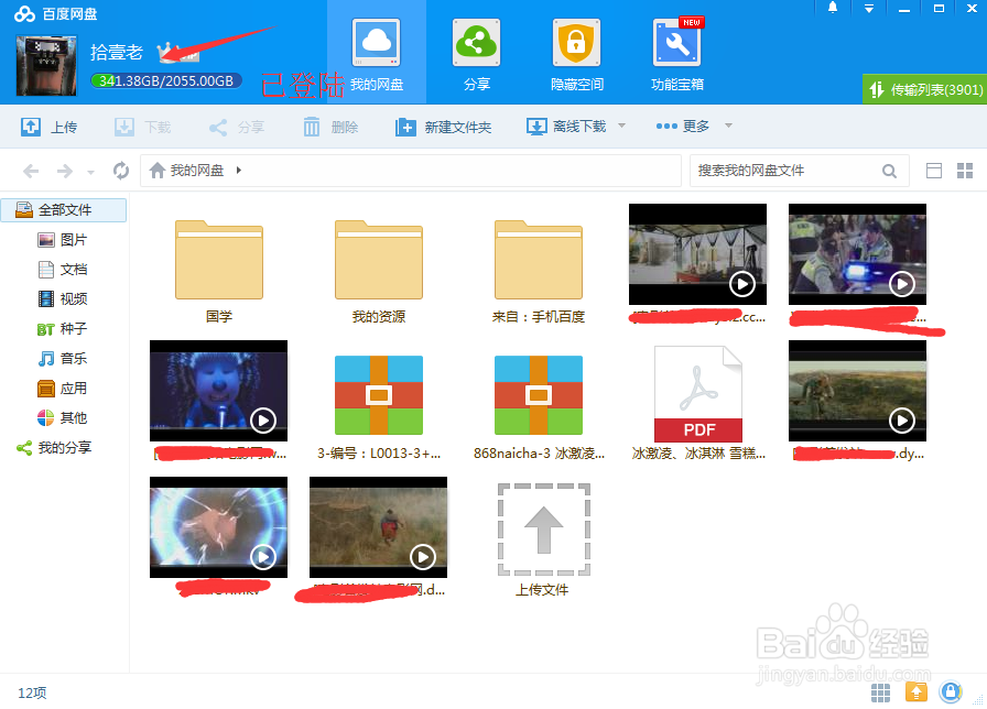 首先,我们要登陆我们自己的百度云盘帐号。如果没有帐号可以下载百度云盘客户端进行注册。