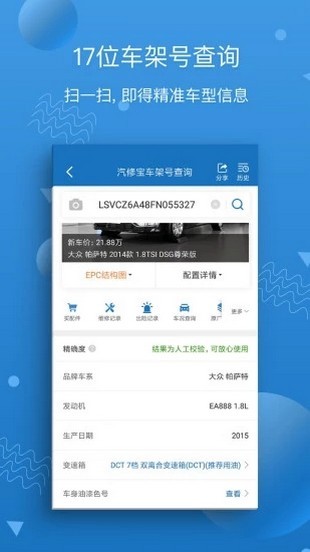 - 车架号解析车型查询- 维修保养记录查询