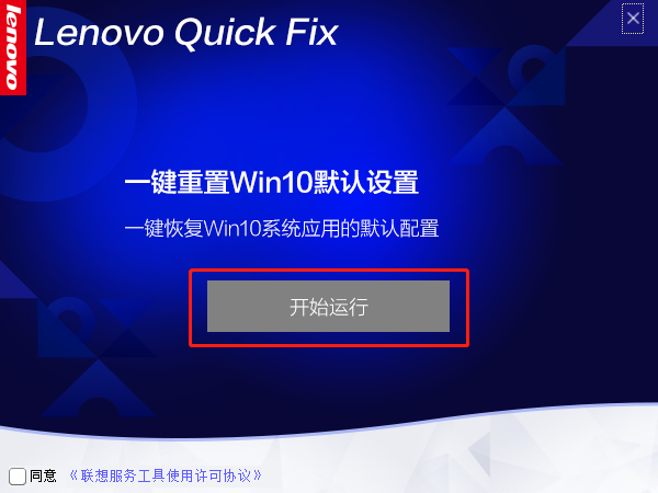 阅读完许可协议,点击“同意”,“开始运行”按钮解除禁用,如图: