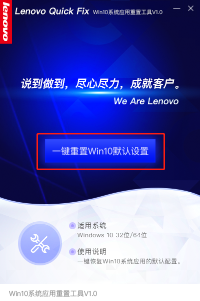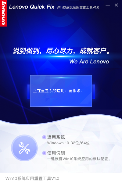 Win10系统应用重置工具是联想工程师为联想用户打造的优化软件,它能够重置用户win10系统中的应用,如果你的电脑出现了问题,可以用它来对电脑应用进行重置,让应用恢复到默认设置。