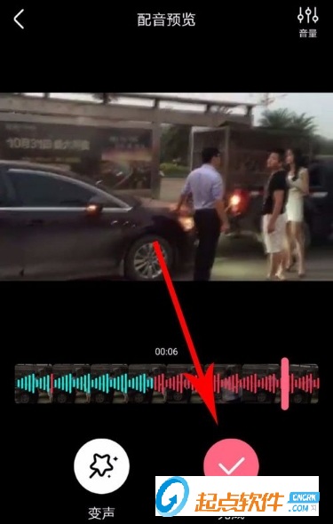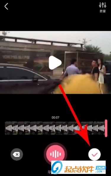 做好以上准备后,现在我们就可以开始为别人发布的皮皮虾视频配音了,点击下面中间的按钮后,就可以开始配音了,配音结束后点击配音按钮右边的“√”