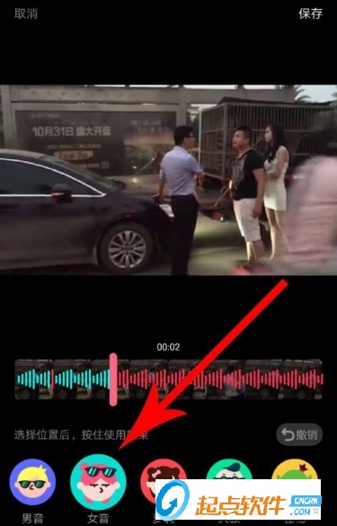 变声工具可以将您自己的声音转变为女声/男声、怪物等,得到非常特殊的配音效果,操作方法是点击变声工具分类,点击之后一直按住,您原来的声音就会发生改变。
