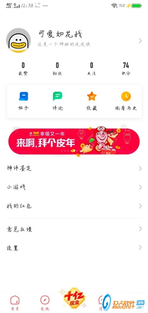 1. 首先,请大家找到“皮皮虾”App,点击进入主界面,然后选择屏幕顶部的头像按钮,来到个人资料主界面。
