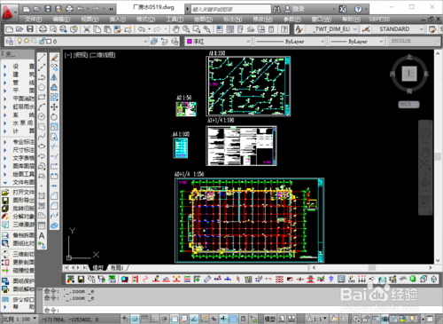 打开要批量打印的图纸。可以看出图中有三种不同尺寸的图框。