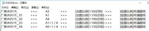 点击打印,大功告成。查看保存目录,有个打印日志的文件,可以看到图纸被插件识别的尺寸和比例