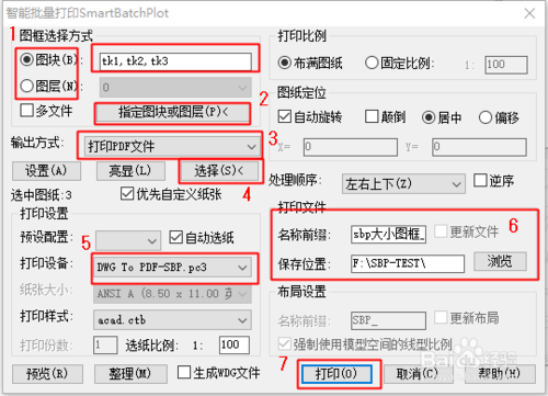 选SBP打印-批量打印,第一次比较慢会自动初始化。通常按图片相应设置
