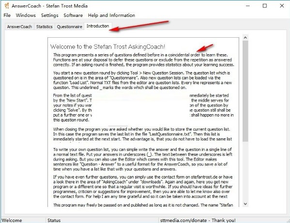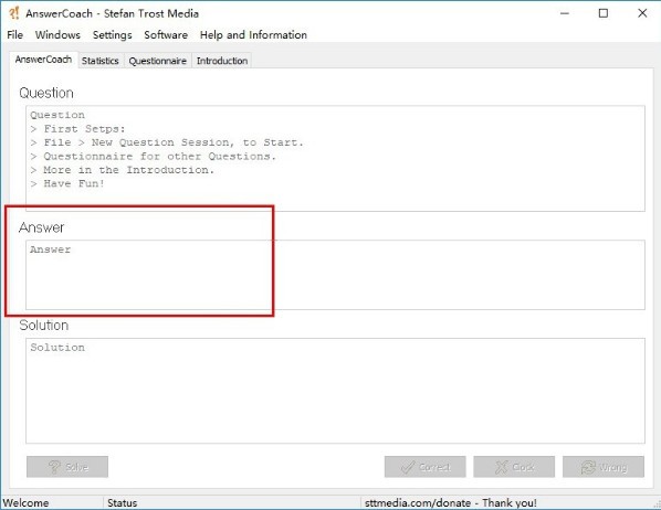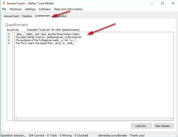 示例问题列表:在程序中以及本页中,都有示例问卷,您可以在“回答教练”中使用。你可以在类别问卷中找到问题列表。如果你喜欢,你可以给我们其他的问卷,这样别人就可以从中受益。我们也将在这一领域发表它们。
