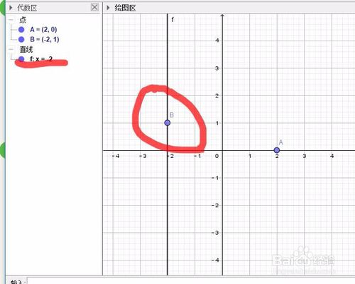 然后在x轴负半轴上绘制一条平行于y轴的直线,并在其上绘制一个动点B,B是绘制抛物线的控制点。