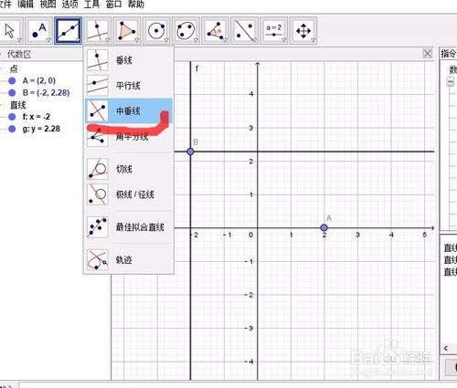 我们知道抛物线上的点都是是直线g与AB的中垂线的点,所以我们将AB的中垂线做出来。