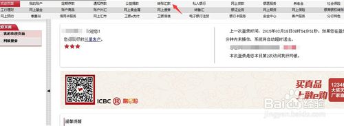 3、在欢迎页面过后,有不少选项,在这里可以看到转账汇款,点击链接就会转到相应页面。