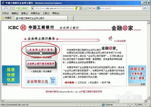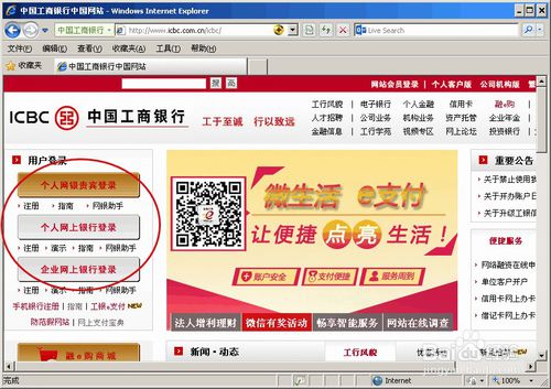 6、若通过工行网银助手的快捷链接,打不开工行网银,可尝试直接通过浏览器,输入工行的官网网址,然后通过工行官网左侧的链接尝试登录,如图: