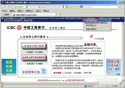 7、若提示安装工行控件,请成功“运行加载项”,如图: