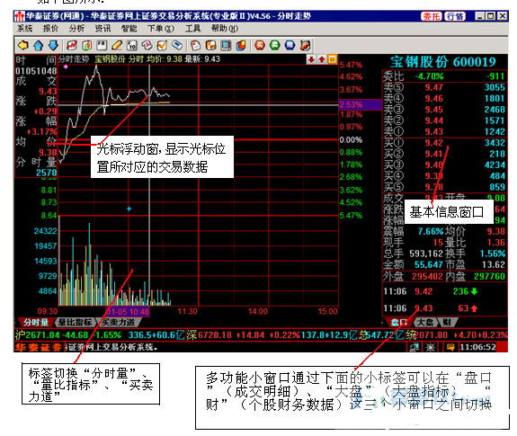 10、完善的成交推送功能,委托和成交后,客户无需手工刷新即可即时变动可用资金和股份,并可在行情图上即时显示委托和成交,方便客户直接在行情走势图上买卖或撤单。