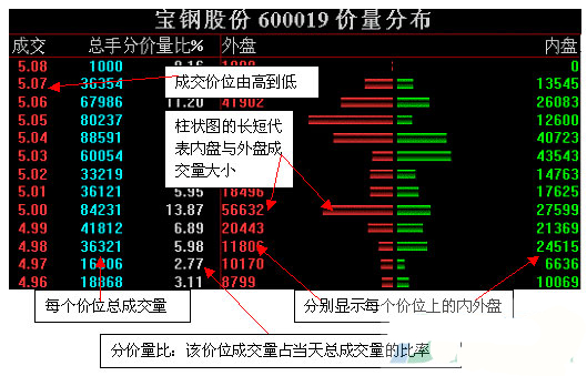 在个股分时走势页面里按“F2”或“02+enter”,都可以切换到成交明细表。分价表可以直观地显示当日的成交分布状态。