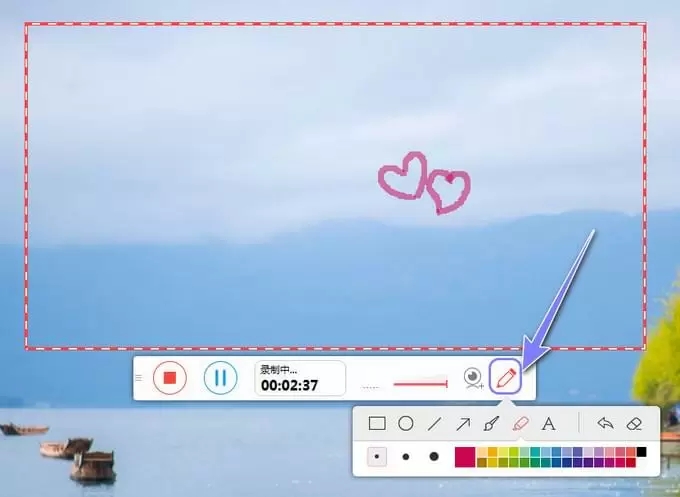 在录制过程中,您还可以录制屏幕上添加注释。点击工具栏的铅笔图标即可,支持添加线条、箭头、文字内容等。