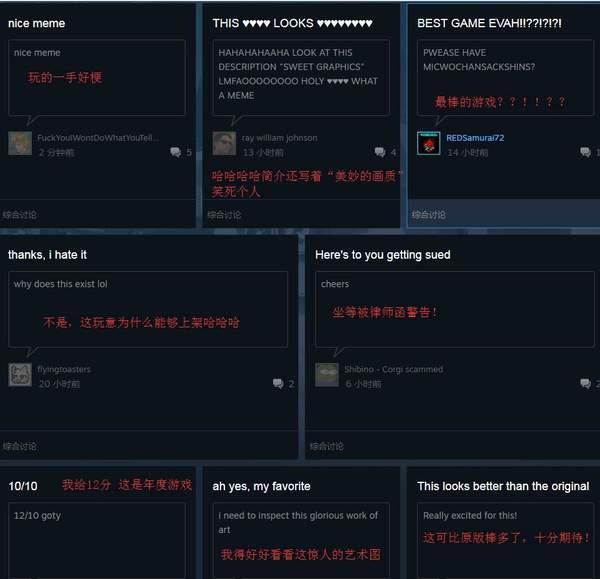 显然这大概率是迫不及待的粉丝在恶搞CDPR的全新力作,玩家们也在社区中为脑洞清奇的作者喝彩。另外游戏的发行日期赫然写着2019年7月,应该是开发者为了让游戏登上近日发售排行榜的小伎俩,感兴趣的朋友可以前往Steam了解更多详情。