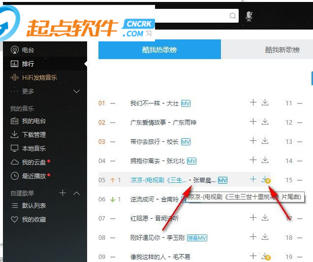 2、现在开始下载歌曲,我们点击一个需要付费的歌曲下载,例如这首“张碧晨_杨宗纬-凉凉.MP3”