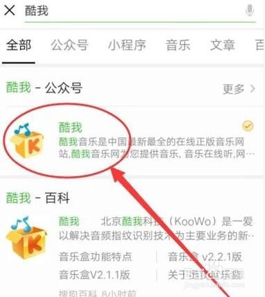 在微信搜索酷我公众号,点击并关注,进入下一页面,如图所示。
