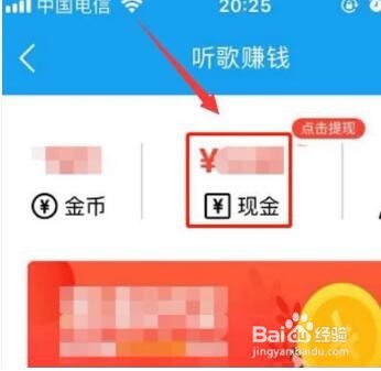 进入之后,点击“听歌赚钱”,进入下一页面,如图所示。