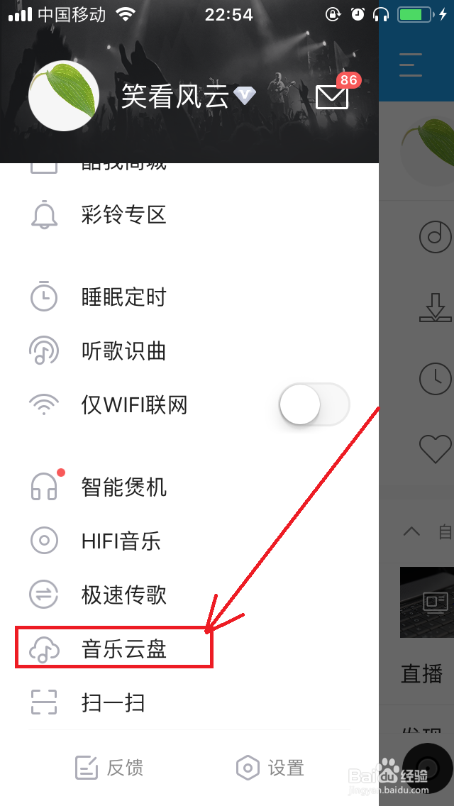 (二)打开手机酷我音乐,打开菜单,找到音乐云盘,就可以看到刚才我们从电脑上传的歌曲了。