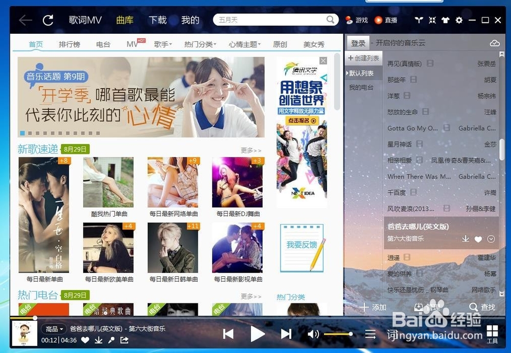 同样的步骤,在手机上上传自己喜欢的歌曲到音乐云盘上,在电脑上也就可实现手机、电脑相互同步了。