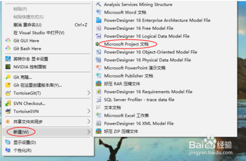 然后回到桌面,我们右键选择“新建”->“Microsoft Project 文档”,就可以创建project了,如下图所示:
