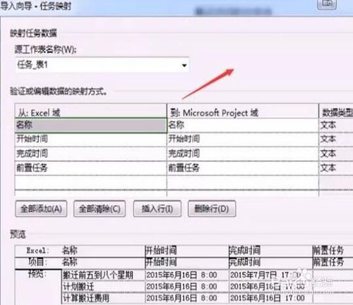 接着进入任务映射界面,在这里需要设置Excel中的字段对应Project中的哪些字段,如下图所示