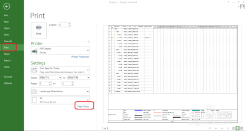 选择“打印”->“页面设置”。