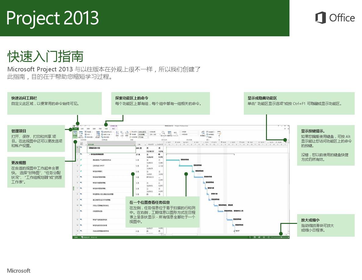 project 2013是微软官方推出的一款办公软件,可以帮助用户更好完成项目管理操作。project 2013界面和excel有些类似,用户可以将项目安排、进度等内容详细的记录在软件当中,完成后直接标记特别符号,方便更加直观的了解项目进展,一切尽在掌握之中。本次为大家带来的是project 2013破解版,内含有激活密钥,输入后即可直接验证成功,永久免费使用全部功能。project 2013界面整体上比较清爽,不含有任何多余累赘的内容,操作起来也会更加的方便,为你提供更加高效的办公环境。