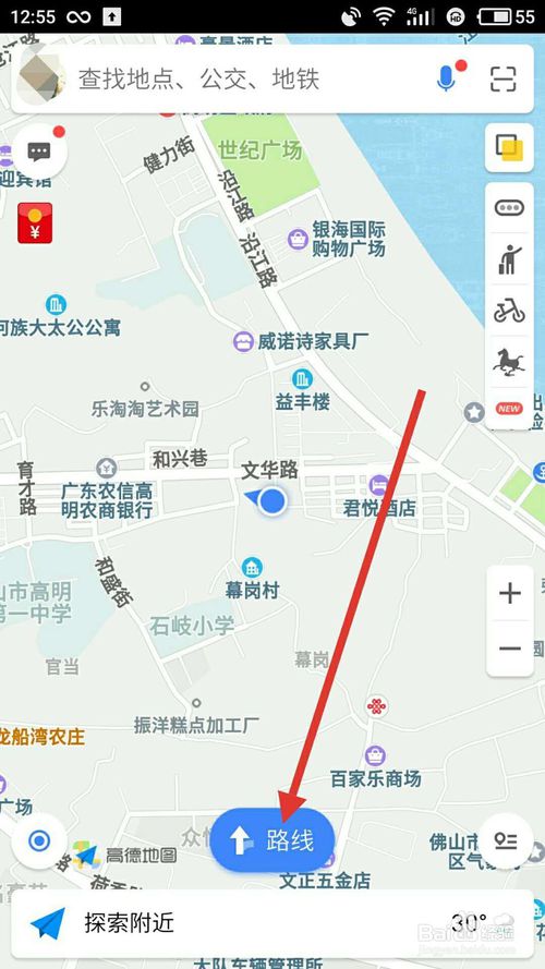 高德地图2019最新版怎么用?高德地图怎么导航?1、打开高德地图首页,点击中间下方位置的“线路”,如下图所示: