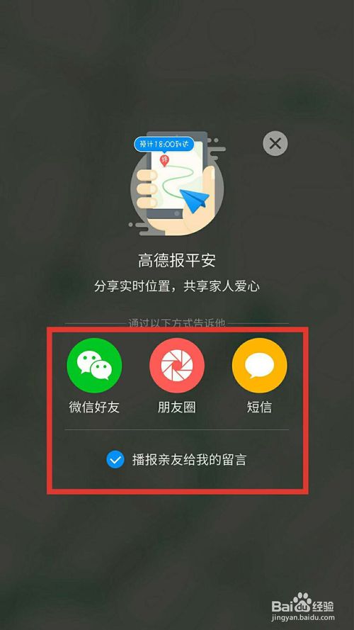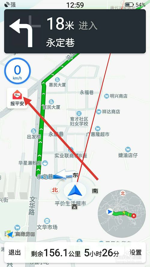 7、在到达目的地的时候,可以给亲朋好友报平安,点击导航页面的“报平安”,如下图所示: