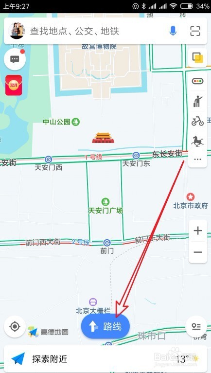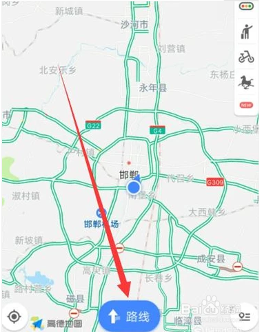 1、打开高德地图后,点击“路线”图标。
