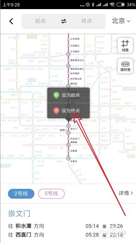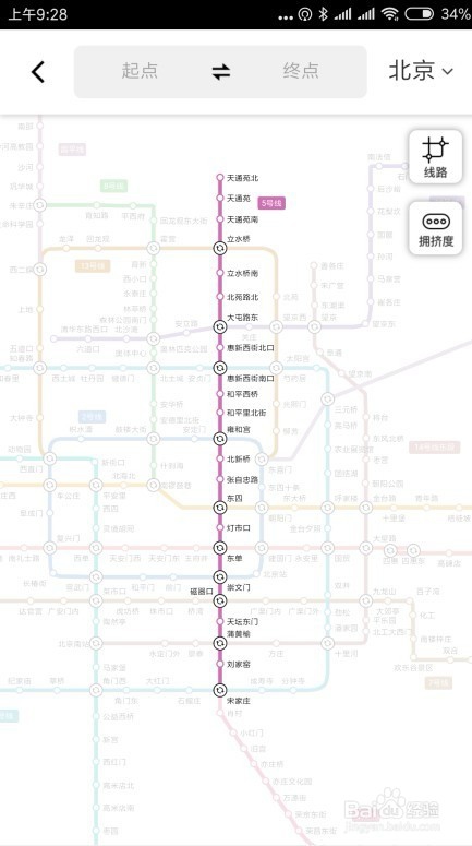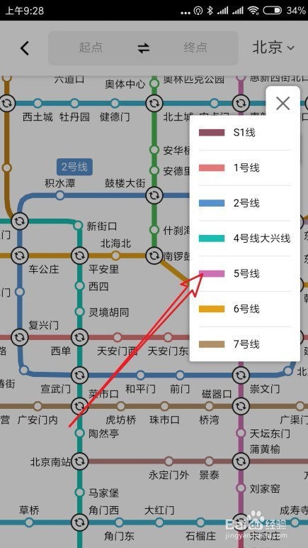 4、在这里选择要乘坐的几号线菜单项,比如五号线