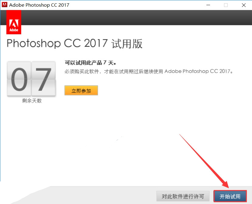 9.点击【开始试用】。
