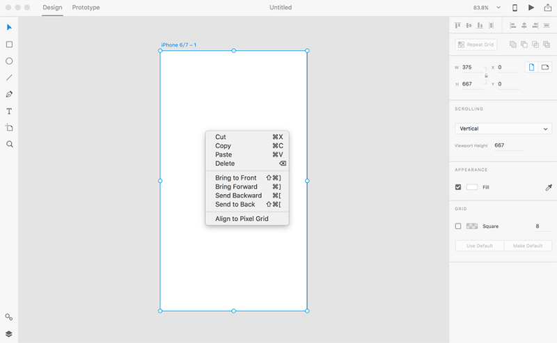Adobe XD 中的界面