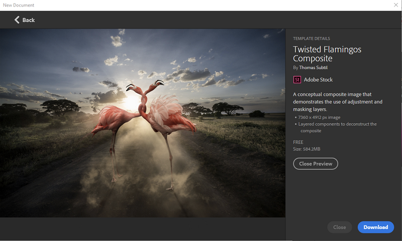 可轻松访问预设,并且可以从文件 > 新建获取免费的 Adobe 资源模板。