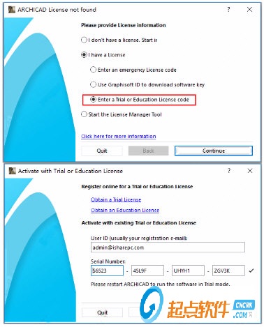 3、软件打开时会弹出无法找到许可,再次输入上面的邮箱和序列号即可;