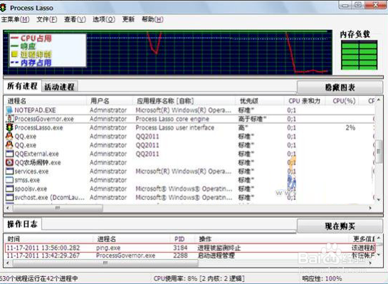 Process Lasso提供了优先级设置功能,用户可以针对每个单独进程设定优先级,确定他们的单独权限,并且可以强行的终止掉那些你不希望看到的进程。