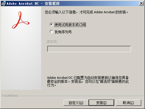 4、接着进入到Acrobat Pro DC 2019的安装向导,如下图,选择我想试用