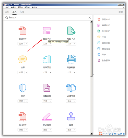 acrobat pro dc破解版怎么给PDF文件添加水印?使用Acrobat Pro DC打开一个PDF文件。