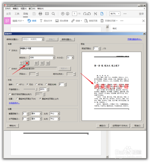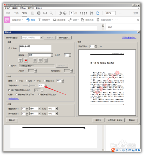 然后,给水印文字设置一定的不透明度,不影响正文阅读。