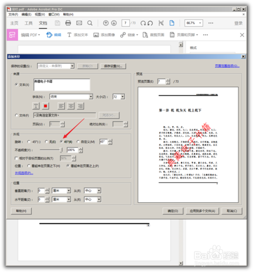 接着,给水印文字设置旋转角度,预设的是45度角。