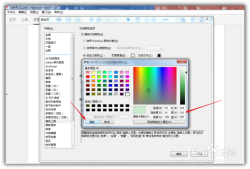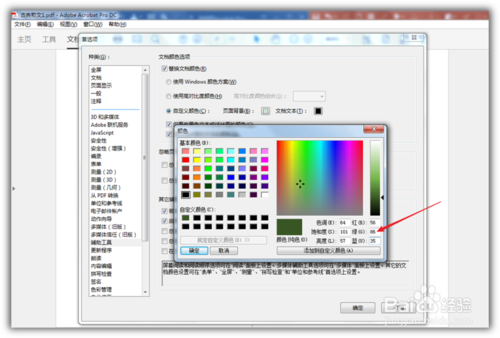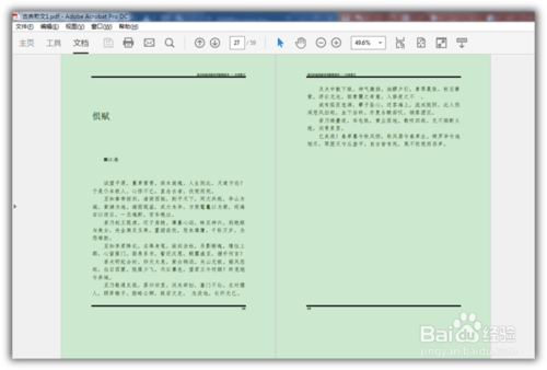 打开的窗口中点击确定,则颜色设置完成,打开的PDF文档就变成了绿色背景、深绿色文字,看起来页面不会显得很亮很刺眼。