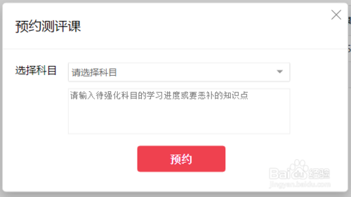 点击“更多学科”按钮,会自动弹出预约测评课的弹框,同学根据自己的需要和实际情况填写预约内容并提交,即可完成预约。