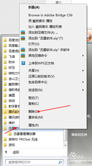 2、在“迅雷软件”的目录上右键,选择“删除”。