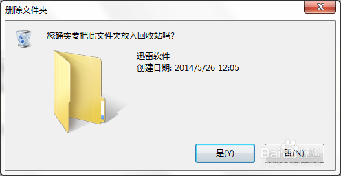 3、系统提示,确实要把此文件夹放到回收站吗?选择“是”,即可删除掉残余文件夹。如图所示